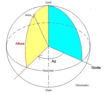 En astronomía se llama altura (a) de un astro al arco de vertical contado desde el horizonte hasta el astro. Su valor absoluto es siempre menor o igual que 90° y, por convenio, es un valor positivo si el astro es visible (es decir si está sobre el horizonte) y negativo si no es visible (es decir si está bajo el horizonte). Es una de las dos coordenadas horizontales, siendo la otra el azimut o acimut. La altura y el acimut son coordenadas que dependen de la posición del observador. Es decir un mismo astro en un mismo momento son vistos bajo diferentes coordenadas horizontales por diferentes observadores situados en puntos diferentes de la Tierra. Esto significa que dichas coordenadas son locales. En la actualidad para medir la altura de un astro se utiliza un instrumento denominado sextante. Si lo que se mide es la altura del sol, hay que tener mucho cuidado para no dañar los ojos. Las coordenadas horizontales pueden ser calculadas matemáticamente. Esta información al mismo tiempo puede ser utilizada para calcular la radiación solar recibida por la tierra en un período de tiempo determinado o la proyección de sombras de un elemento que aún no existe como un edificio, entre muchísimas otras funciones.