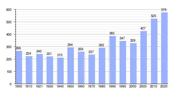 En 2020 registró una población de 576 personas, lo que corresponde al 2.75 % de la población municipal.[1][7] De los cuales 285 son hombres y 291 son mujeres.[1][7]