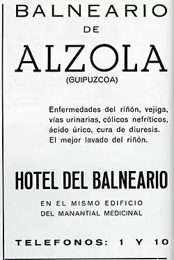 - ↑ a b c Alzola Basque Water.Balneario | Historia del Balneario Archivado el 4 de marzo de 2016 en Wayback Machine.