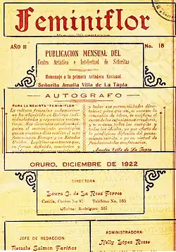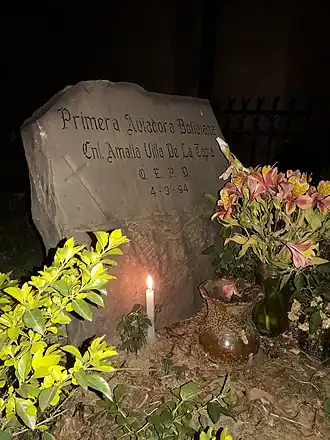 - ↑ «Amalia Villa de la Tapia, primera aviadora boliviana». La Patria. 30 de agosto de 2015. Archivado desde el original el 11 de septiembre de 2018. Consultado el 10 de septiembre de 2018.
