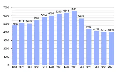 | Gráfica de evolución demográfica de Amandola entre 1861 y 2001 |