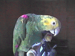 ![]() Loro cabeza amarilla (Amazona oratrix) como mascota. | ||