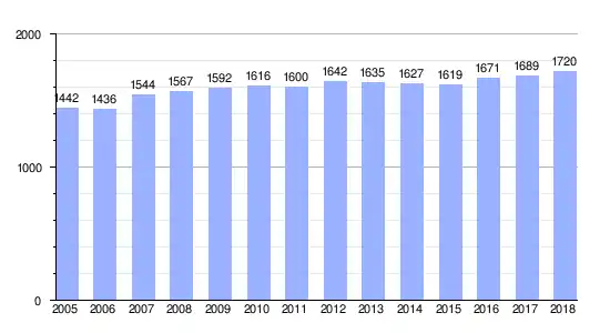 | Gráfica de evolución demográfica de Ambérieux-en-Dombes entre 2005 y 2018 |