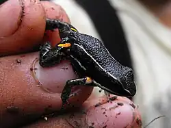- ↑ a b c Frost, D.R. «Ameerega picta». Amphibian Species of the World: an Online Reference. Version 6.2. (en inglés). Nueva York, EE.UU.: Museo Americano de Historia Natural. Consultado el 20 de febrero de 2021.