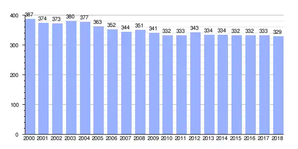 | Gráfica de evolución demográfica de Ameijenda (parroquia) entre 2000 y 2018 |