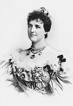 ![]() La reina Amelia portando la "Diadema de las Estrellas". | ||