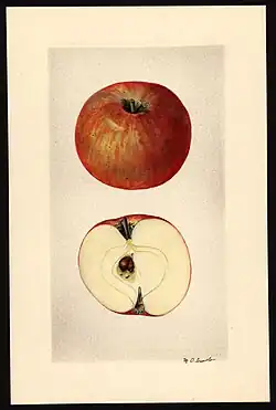 - ↑ Hampson, Cheryl R.; Kemp, Henk (2003). Apples. Botany, Production and Uses, ed. Characteristics of Important Commercial Apple Cultivars. CABI Publishing. pp. 62. ISBN 0-85199-592-6.