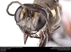 - ↑ (2008) , website, Sphecidae sensu lato site, Individual genus PDF files