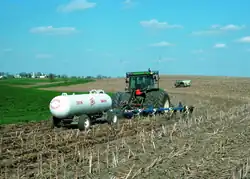 Se llegó así en poco tiempo al uso agrícola en gran escala del amoniaco anhidro, con tan buenos resultados que en pocos años llegó a ser de uso ordinario en Estados Unidos. Conteniendo el 82 % de nitrógeno en forma totalmente amoniacal, el amoniaco anhidro (sin agua), llamado muchas veces amoniaco agrícola o amoniaco líquido es el abono más concentrado y el único que se aplica en forma de gas.[5]