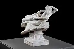 El grupo presenta la carrera precipitada y feroz de una mujer que lleva sobre su espalda, como cadena, a su víctima, el hombre inanimado y rígido. La espalda de la mujer se hunde, el torso de el hombre se aplasta, sus piernas cuelgan, y se dibuja un arabesco de miembros furiosos y de miembros muertos.[2]