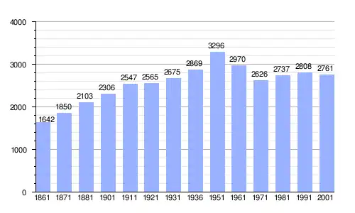 | Gráfica de evolución demográfica de Amorosi entre 1861 y 2001 |