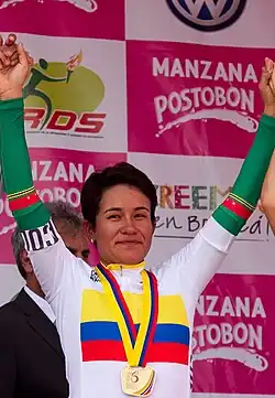 ![]() Ana Cristina Sanabria en el podio del Campeonato de Colombia de Ciclismo Contrarreloj en 2016 | ||||||||||