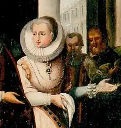 ![]() Anna Lascaris, condesa de Tenda, en un detalle de una pintura del siglo XVIII conservada en la Comuna de Limone Piemonte. | ||