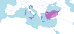 | Imperio romano de Oriente Βασιλεία Ῥωμαίων Imperium Rōmanūm Imperio bizantino | |||||||||||||||||||||||||||||||