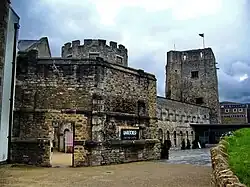Torre del homenaje del castillo de Goodrich, ejemplo del estilo de la fortificación que poco a poco comenzó a reemplazar el diseño del castillo de mota castral de madera a fines de los años 1130. Fotografía de finales del s. XIX.