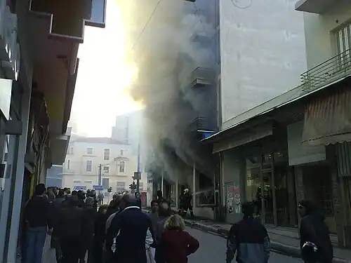 El 6 de diciembre de 2008 el joven de 15 años Aléxandros Andréas Grigorópulos fue asesinado a tiros por el policía Epaminondas Korkoneas en el barrio de Exarchia, en Atenas. Casi de inmediato, anarquistas, izquierdistas y otros simpatizantes libertarios se reunieron en una manifestación y atacaron bancos, vehículos policiales y oficinas del gobierno de la zona. La muerte de Grigorópulos dio lugar a grandes manifestaciones, con miles de manifestantes en lucha contra la fuerza de choque con bombas molotov, ocurriendo episodios de destrucción de edificios como la Biblioteca Legislativa estatal de Atenas y varios locales de venta de automóviles importados.
