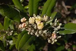 Es un arbusto o árbol, con el hábito de Buddleia, con numerosas ramas, cilíndricas, las hojas verdes, opuestas , oval-oblongas, apiculadas o mucronudas, más o menos estrechas o casi redondeadas en la base, con una capa fina y secamente coriáceas, de color verde oscuro y brillante, más claro el haz. La inflorescencia en cimas de muchas flores, de alrededor de 1 cm de largo; con pedúnculos y pedicelos más bien delgados; brácteas pequeñas, con flores de color amarillo. El fruto es una cápsula.[1]