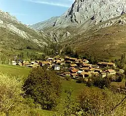 Situado entre agrestes peñas calizas a la vera del Río Esla fue destruida completamente en 1987 para la construcción del embalse de Riaño, junto con los pueblos vecinos de Huelde, Éscaro, La Puerta, Pedrosa del Rey, Riaño, Salio, buena parte de Burón y Vegacerneja parcialmente.[1]