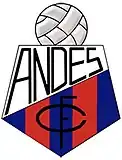 Anteriormente, en la primera etapa del club con su actual nombre, se utilizó un escudo de forma puntiaguda con la punta hacia abajo, con dos franas laterales de color rojo y una central blanca —entonces su uniforme era rojo—, todas ellas verticales. Sobre ellas se dibujaba un balón de cuero marrón. En la parte alta del escudo se leía la palabra Andés y en la parte inferior, junto a la punta, las siglas C y F.
