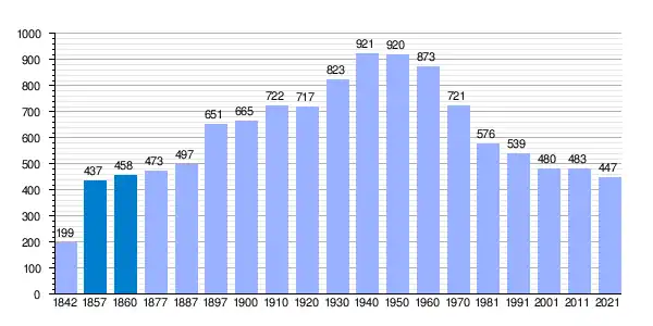 | Gráfica de evolución demográfica de Andavías[8] entre 1842 y 2021 |