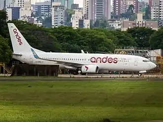 ![]() Boeing 737-800 de Andes Líneas Aéreas en el Aeropuerto Internacional Salgado Filho de Porto Alegre, Brasil (2017) | |||||