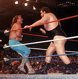 André René Roussimoff (Grenoble, 19 de mayo de 1946-París, 28 de enero de 1993), conocido como André the Giant (André el Gigante) fue un luchador profesional y actor francés.[2] Su extraordinaria estatura y corpulencia se debía al gigantismo.[1][5][7]