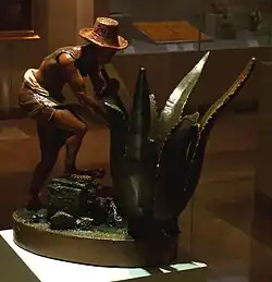 El Museo de América en Madrid, España, posee piezas como Tlachiquero. Esta obra consiste en una figura masculina de un indio tlachiquero inclinado sobre una penca de maguey, extrayendo el aguamiel para la elaboración de pulque.[2]