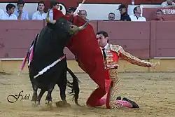Ha sufrido 3 cornadas en Lodosa (Navarra), Lucena (Córdoba) y Azuaga (Badajoz), siendo esta la más grave de las tres necesitando 63 puntos de sutura en el gemelo izquierdo.