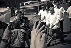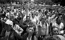 La caravana concluyó en la Plaza de la Constitución de la Ciudad de México el 11 de enero de 1992, con un discurso ante cuarenta mil simpatizantes.[54][55] A pesar de que se concretaran acuerdos en la Secretaría de Gobernación, dirigida por Fernando Gutiérrez Barrios, para anular las elecciones más cuestionadas y establecer gobiernos municipales de transición,[56] el gobernador Neme Castillo finalmente incumpliría con ellos y terminaría por presentar su renuncia.[57]