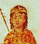 ![]() Una miniatura del Louvre. Manuscrito Ivoires 100, que representa a Andrónico Paleólogo. | ||