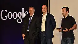 - ↑ Markoff, John (4 de noviembre de 2007). «I, Robot: The Man Behind the Google Phone». New York Times. Consultado el 14 de octubre de 2008.