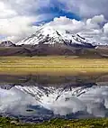Manada de llamas con el Nevado Sajama de fondo en el Parque nacional Sajama. | |