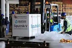 Un primer lote de 739 000 dosis de Sputnik V llegó a Hanói el 30 de septiembre como parte de un acuerdo previo.[444]