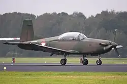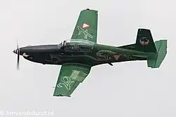 .jpg) Avión holandés Pilatus PC-7 "Turbo Trainer" similar a los que utiliza la Fuerza Aérea Boliviana.