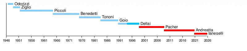 | 1 | Tullio Odorizzi | 21 de septiembre de 1946 | 19 de octubre de 1948 | DC |