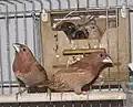 | Lonchura striata domestica | Capuchino del Japón | Lonchura striata swinhoei (capuchino culiblanco) con importantes introgresiones del capuchino picoplata indio (Euodice malabarica) y otras especies de Lonchura | Siglo XVIII d. C. | Japón | |