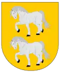 En campo de oro, dos corceles blancos andantes puestos en palo.[1] |