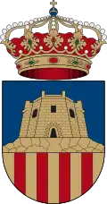 De sinople, el muro de oro, mazonado de sable, sostenido de ondas de plata y azur, surmontado de un cairó con los palos de Aragón. Al timbre, una corona real abierta.[32] |
