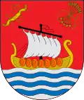 En campo de oro, tres rocas de su color, sumadas, cada una de ellas de tres matas de ortigas de sinople, y colocadas sobre ondas de plata y azur. Timbrado de corona Real, cerrada.[14] |