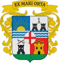 Esudo mantelado en curva. De sínople, un castillo de plata mazonado de sable y aclarado de sínople sobre ondas de plata y azur. Mantel de azur, con dos montes de plata, superados en la diestra, de un creciente de plata y en la siniestra de una cruz del mismo metal. Timbrado de corona real cerrada.[29] |
