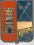 Escudo de gules con una torre de oro, almenada [, donjonada de tres donjones], mazonada de sable y aclarada de azur. Al timbre, la corona real española. [6] |