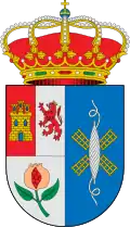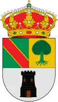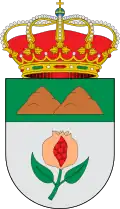 Escudo cortado. Primero de oro un estandarte de sinople acompañado de granada de gules, tallada y hojada de sinople, y de dos llaves de sable cruzadas. Segundo, de azur, un moral de sinople, fileteado de plata, acompañado de dos espigas de oro. Al timbre corona real cerrada.[44] |