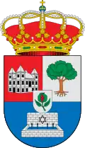 Escudo tronchado. 1.º en campo de plata encina arrancada al natural. 2º en campo de sinople castillo de plata mazonado de sable y aclarado de sinople, saliente de la torre del homenaje creciente de plata. En punta granada al natural tajada de gules. Al timbre corona real cerrada.[22] |