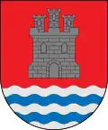 De gules, perla de plata cargada de ondas de azur. Sobre el todo, castillo de oro, mazonado de sable y aclarado de azur. [34] |