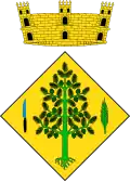 «De sinople, un álamo de plata. Campaña jaquelada de oro y sable. Al timbre, corona mural de villa.» Blasón aprobado el 20 de marzo de 1998. DOGC n.º 2.621 de 17 de abril de 1998.[11] |
