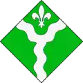 «De oro, cuatro palos de gules, brochante sobre el todo, una flor de lis de azur.»[5] |