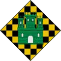 - Forma: El artículo 26 recoge la forma que deben tener todos los escudos de las entidades locales, y ésta se describe como cuadrada, apoyada sobre uno de sus vértices y con una de sus diagonales dispuesta verticalmente y la otra horizontalmente. Algunos tratadistas recogen esta forma como escudo en forma de ciudad o municipio. La Generalidad, en la versión en castellano del decreto 263/191 describía la forma como en forma de losange con ángulos rectos[2] y en el decreto 139/2007, la describe como "embaldosada".[1]