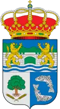 Escudo partido. 1º de oro, un árbol de sinople. 2º de sinople, un león de oro. Mantelado en punta con ondas de plata y azur. Bordura general de azur, cargada de siete aspas de oro. Al timbre corona real cerrada.[43] |