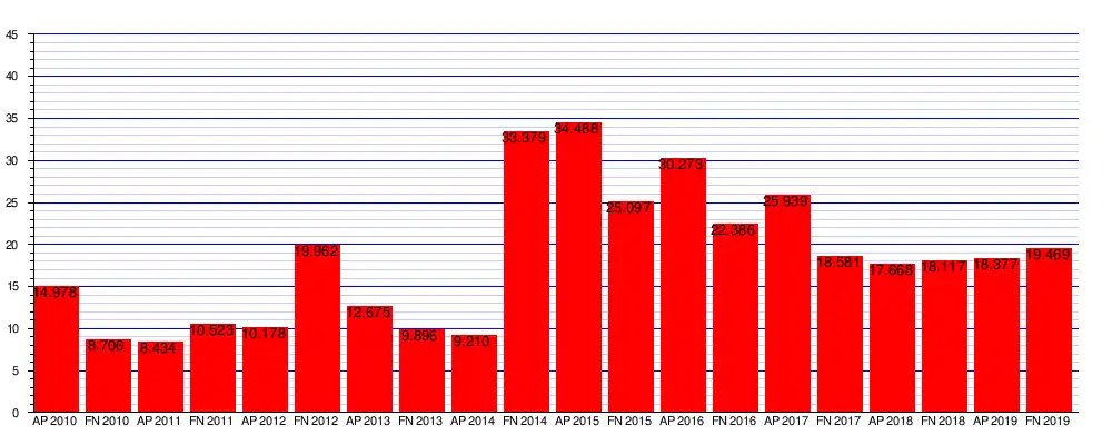 | 2019 Finalización | 197.507 | 10 | 19.750 | * | * | * | * | * | * | 75.065 | 4 | 18.766 | 272.572 | 14 | 19.469 |