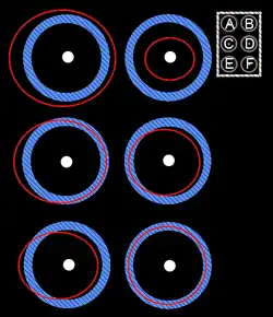 C, D: la órbita del asteroide se mantiene cerca externamente (o internamente) de la del planeta.